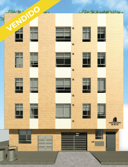 Centenario XXV es un edificio de vivienda multifamiliar, con cuatro y tres apartamentos por piso para un total de 14 unidades de vivienda, el área construida del proyecto es de 913m2 aproximadamente y cuya distribución es:
